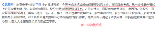 $立讯精密(SZ002475)$;消费电子+苹果17Q4业绩预期、立讯今天继续走反扑行情,把60上方的缺口完成补缺,盘中最高冲61上方,下午有所回落收盘59附近。今天的走势完全是符合前几天对它的预p,而且前几天也是做了相应的低位加舱,今天的浮盈已经持平了,接下来的方向依然不变,按照今天的早盘目biao继续执行计划。