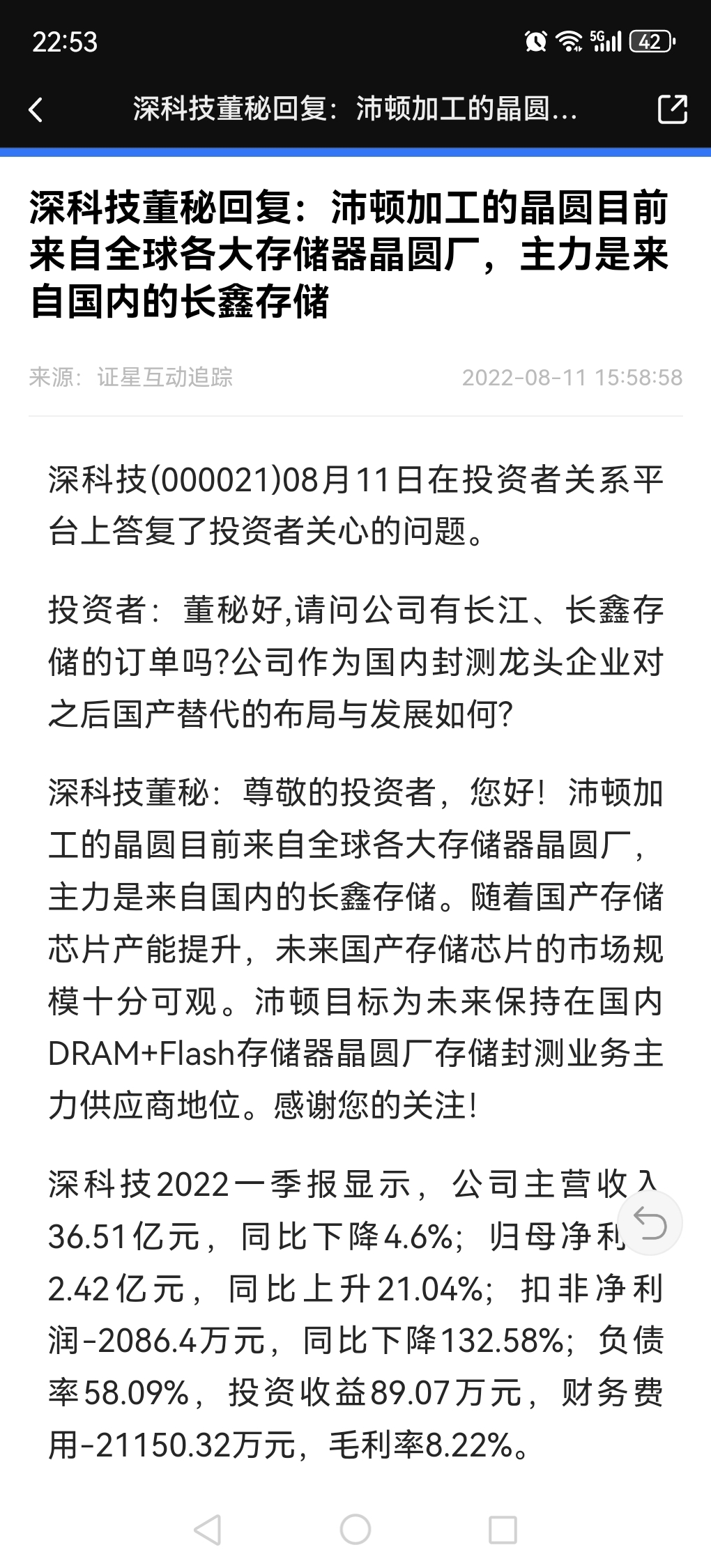 $深科技(SZ000021)$ 长鑫存储、国产替代、加油!