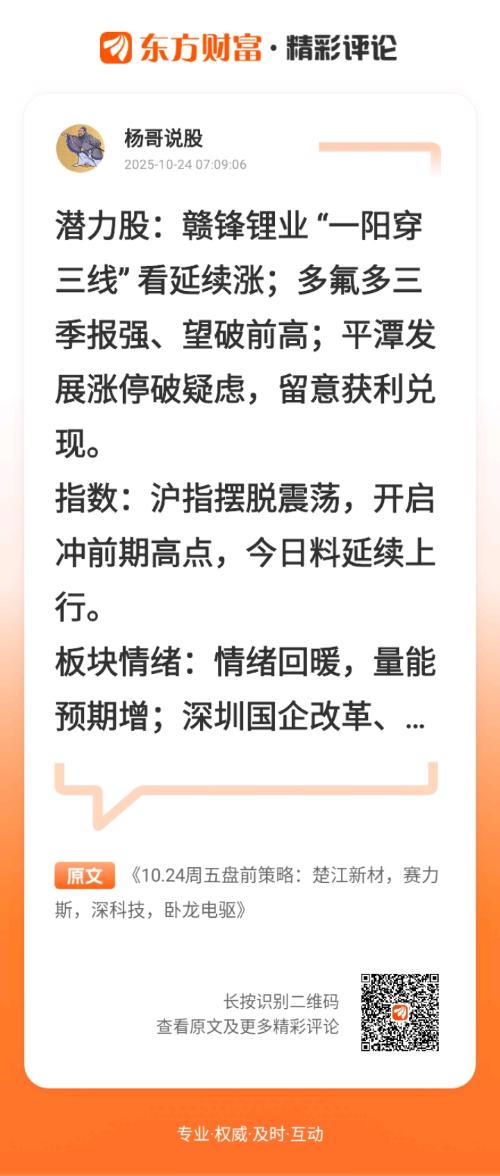 赣锋锂业002640:昨天的表现,让我盯着盘面时忍不住心头一振。在大盘震荡中,它走出了放量长阳的走势,不仅摆脱了压制,还形成了“一阳穿三线”的技术形态,完美印证了多头行情下的加速趋势。昨日放量企稳,压力位轻松突破,。今日大概率会延续加速上涨的态势,即便盘中有小幅回调,也更像是强势整理,技术与基本面共振的走势,让人对后续的突破充满期待。