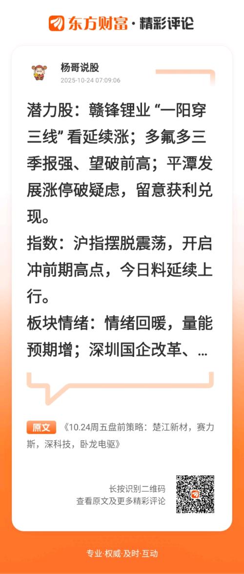 赣锋锂业002640:昨天的表现,让我盯着盘面时忍不住心头一振。在大盘震荡中,它走出了放量长阳的走势,不仅摆脱了压制,还形成了“一阳穿三线”的技术形态,完美印证了多头行情下的加速趋势。昨日放量企稳,压力位轻松突破,。今日大概率会延续加速上涨的态势,即便盘中有小幅回调,也更像是强势整理,技术与基本面共振的走势,让人对后续的突破充满期待。