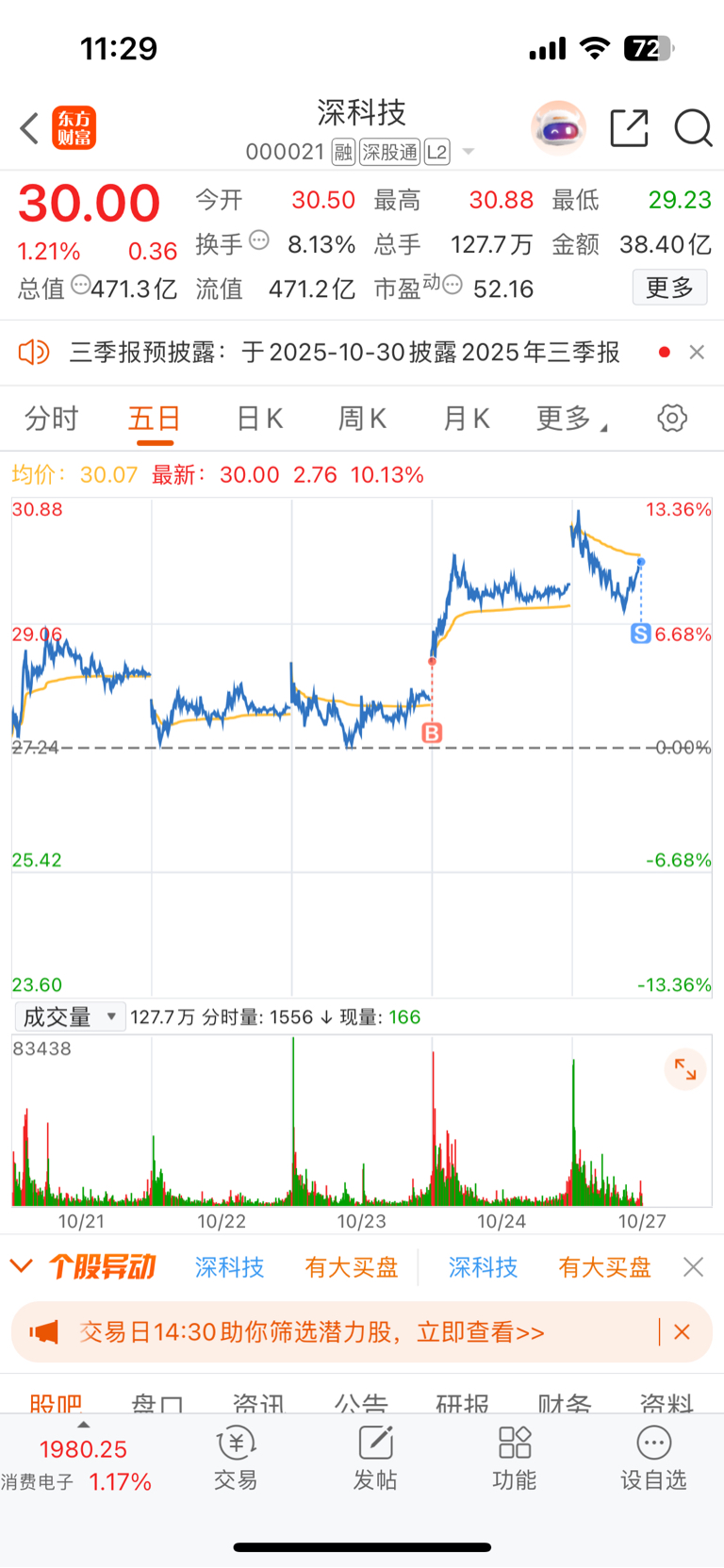 $深科技(SZ000021)$ 走人,这票太弱了,换股,留下的兄弟发财