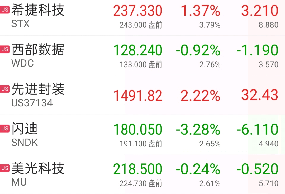 跟我下午收盘前预测一致,美存储芯片全部高开低走,闪迪已经顶不住了,A储存板块两天