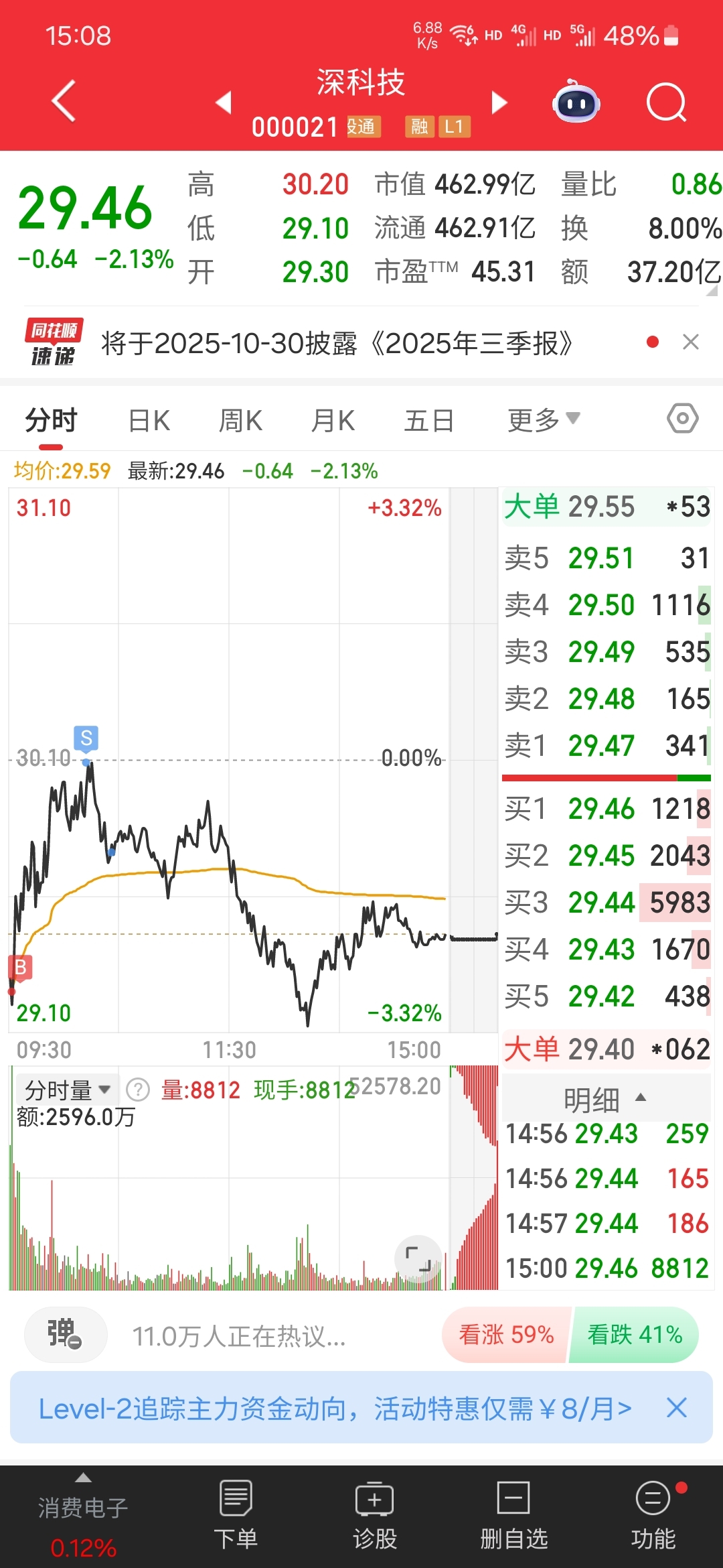 $深科技(SZ000021)$ 短期仍是震荡行情,只能做T降低成本了?静待花开
