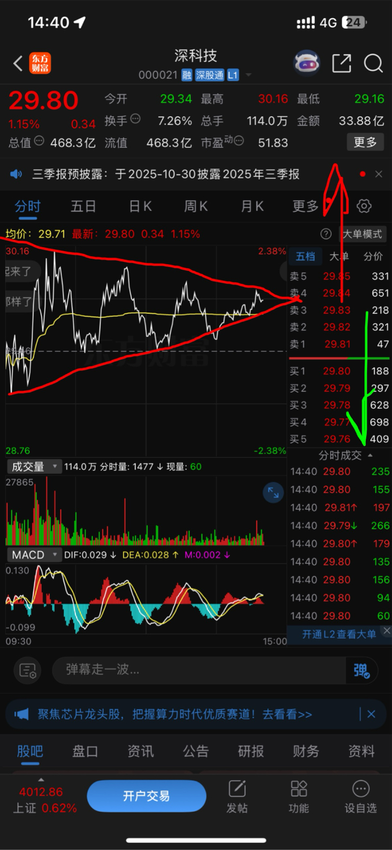 $深科技(SZ000021)$ 画图高手,旗子画的真标准,明天生死局