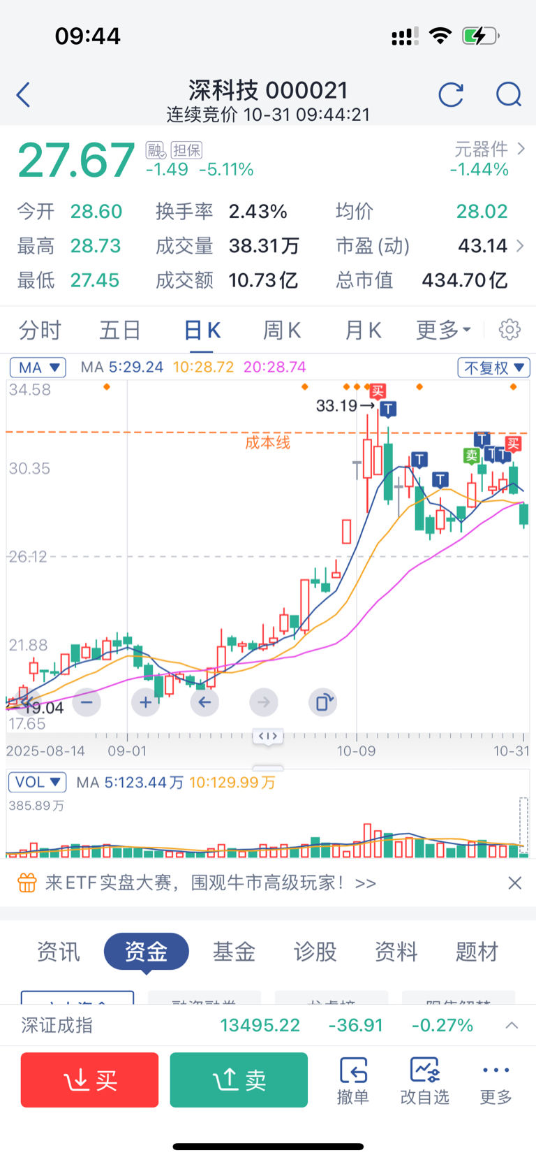 $深科技(SZ000021)$ 每一次都是加仓就跌,减仓就涨,感觉自己被主力监控了一样的,真是++泥嘛的主力,不跟你玩了,清仓,一辈子都记得这个LJ票。