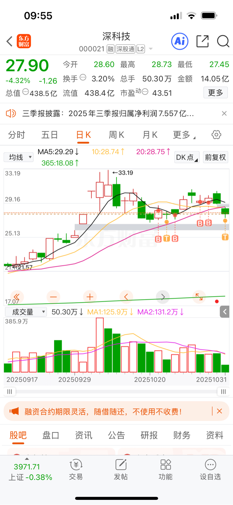 $深科技(SZ000021)$ 跳空低开,跟着大盘往下掉,恐慌盘太多,心态不好的人已经交出筹码,恐慌的时候就是机会,记住养家老师的话