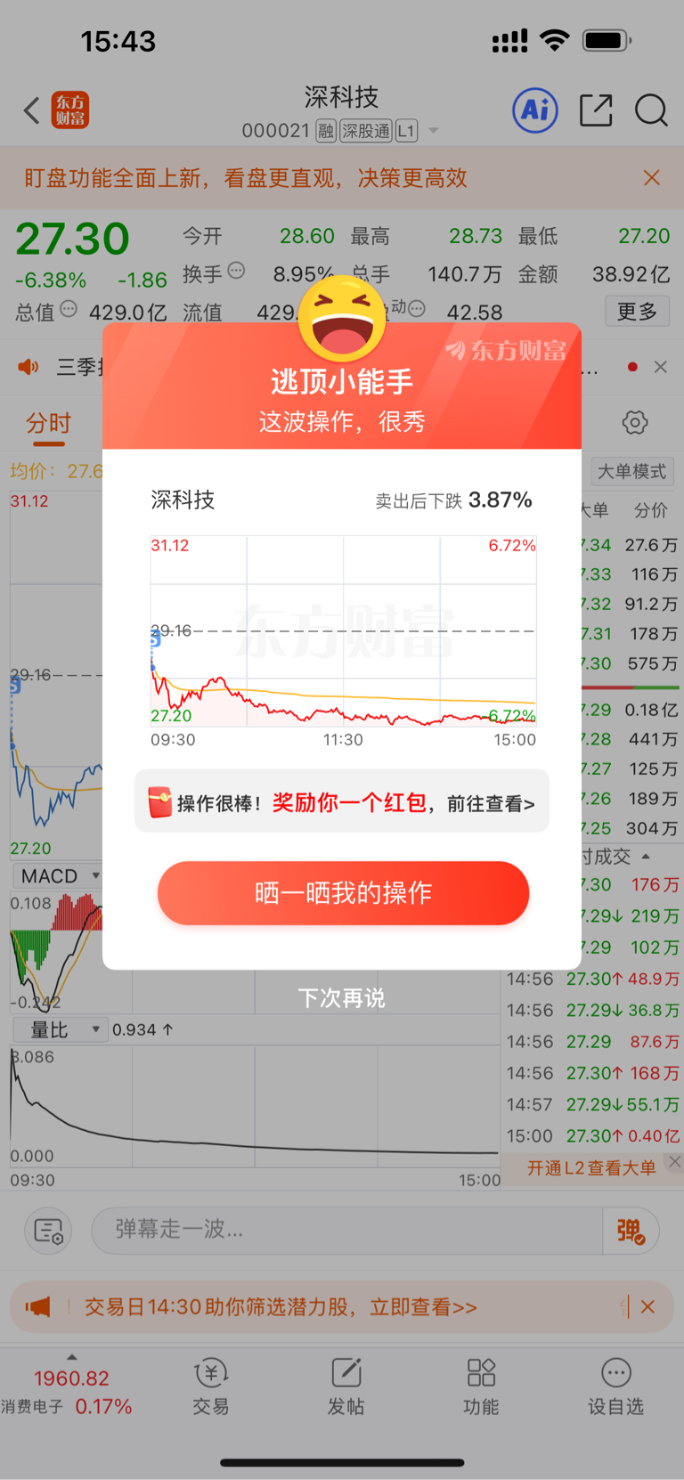 $深科技(SZ000021)$ 彻底分手 赚了22个点 删除了