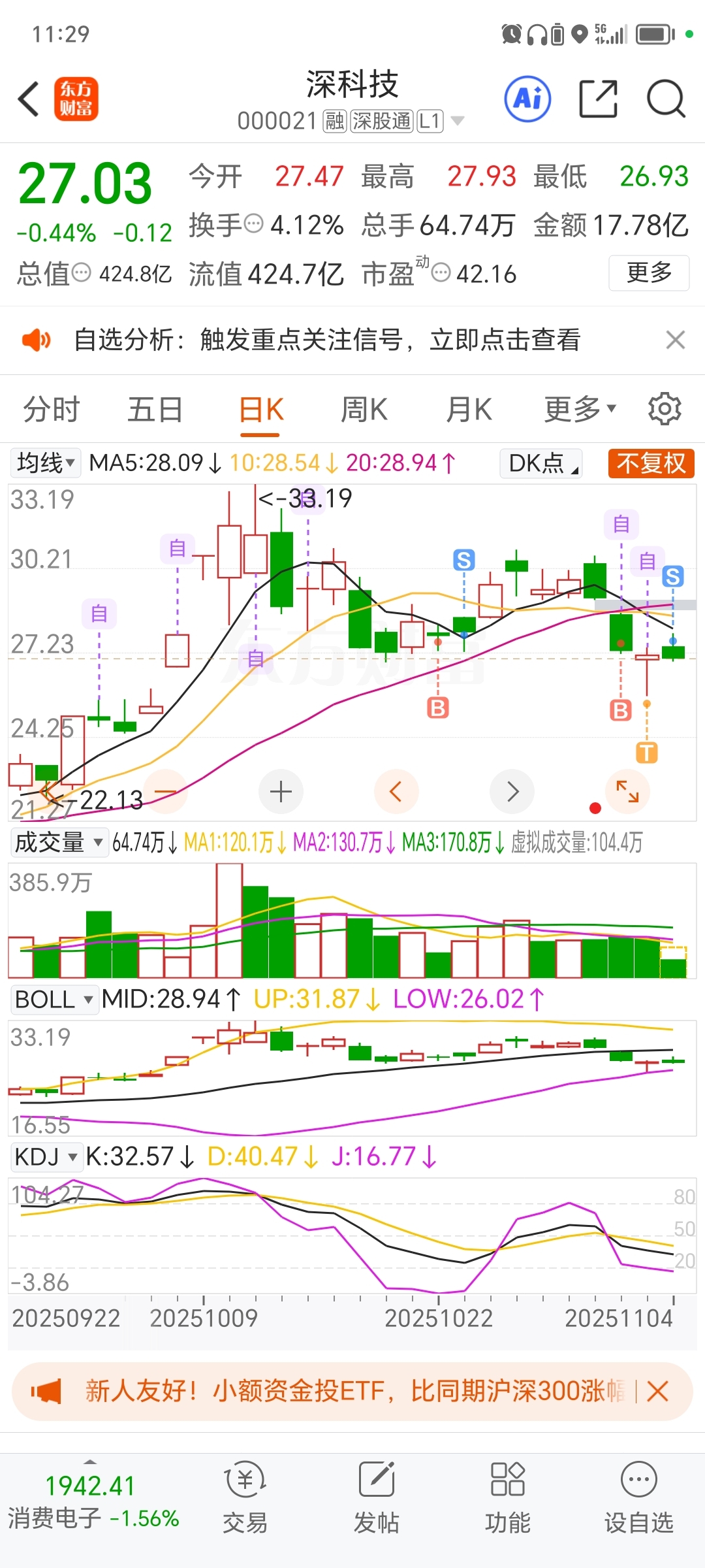 $深科技(SZ000021)$ 做了两次小短线,这股票短期不会涨了