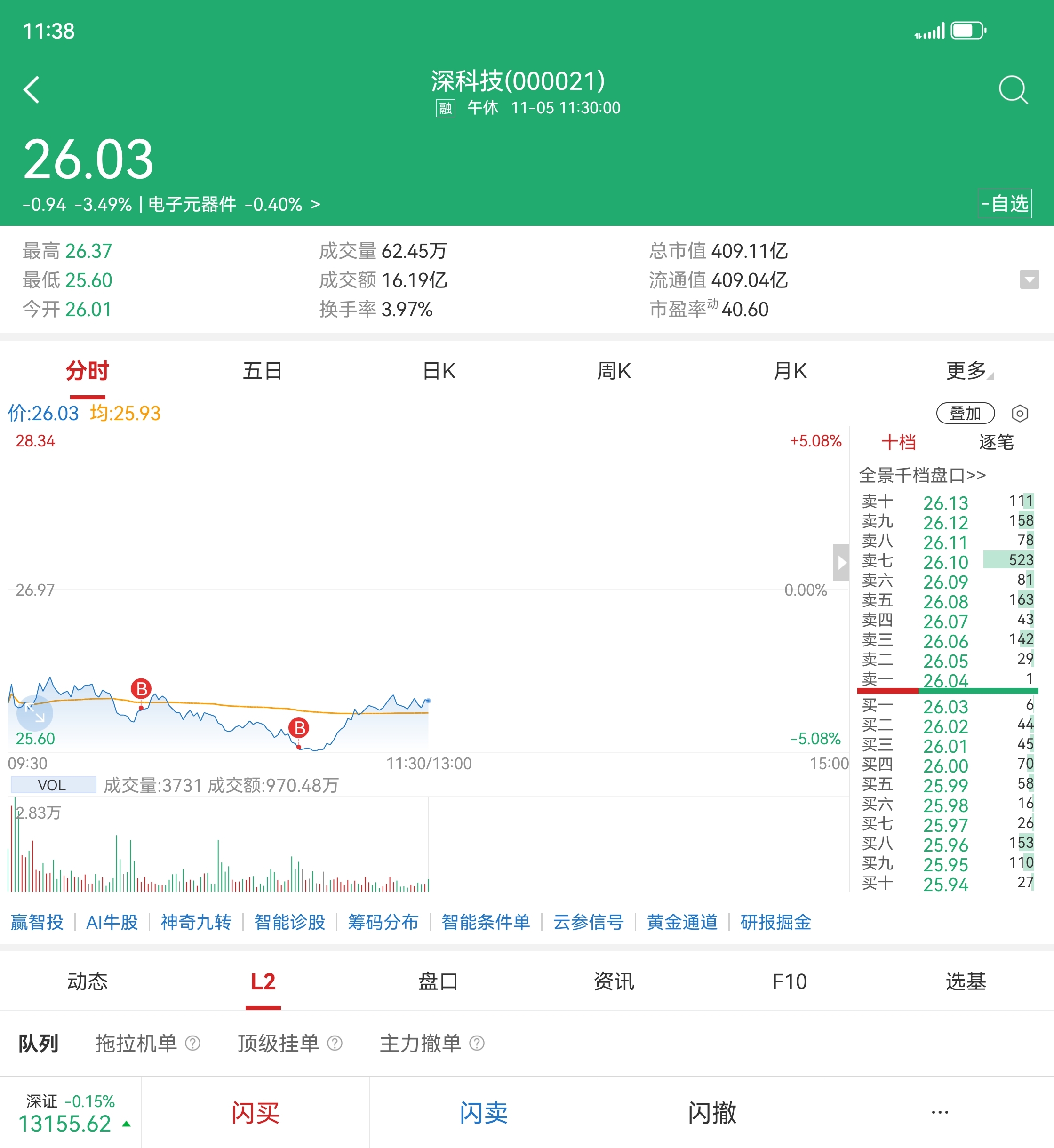 $深科技(SZ000021)$ 抄底.下午拉红就T