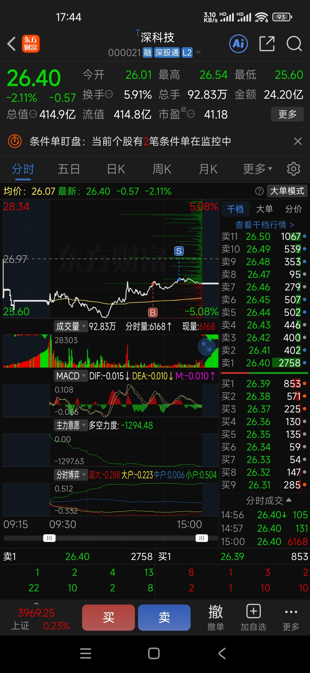 $深科技(SZ000021)$ 无量下跌,把我还是吓走了,就500股,给证券公司打工了!
