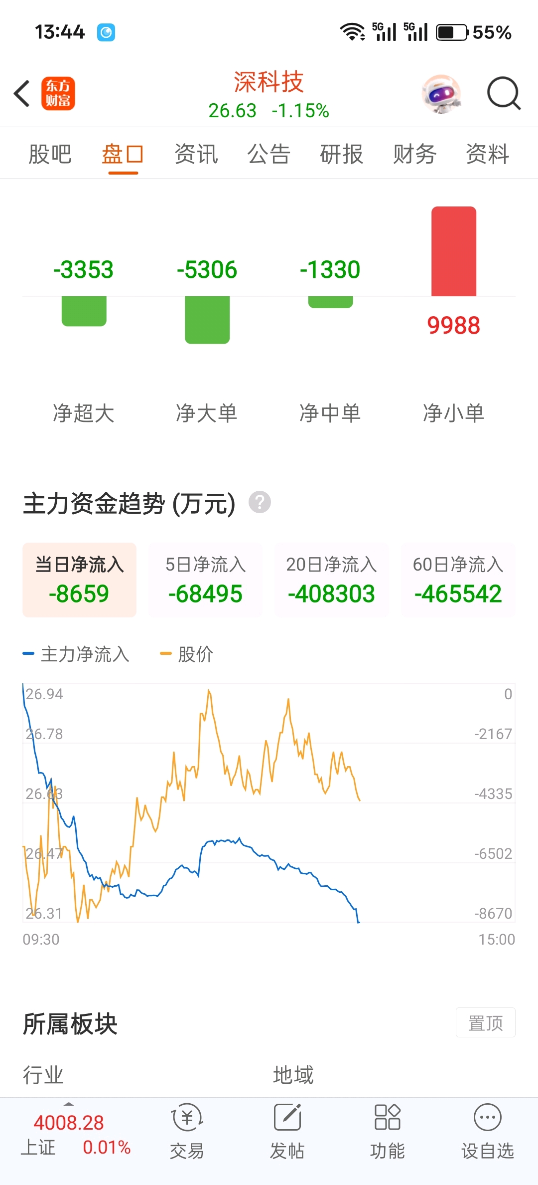 $深科技(SZ000021)$ 又开始大流出了。资金不会骗人。