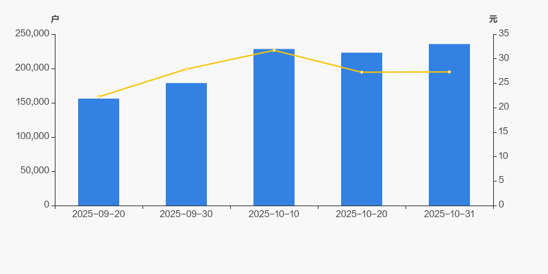 2025年9月20日至今,公司股东户数显著大幅增长,区间涨幅达51.03%。2025年9月20日至2025年10月31日区间股价上涨22.92%。