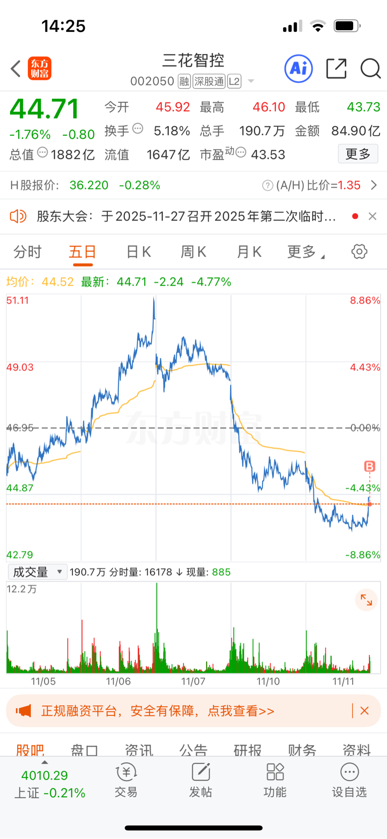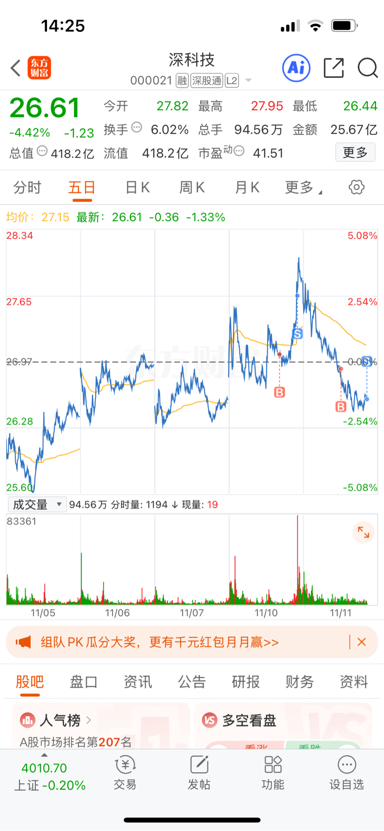 11.11记录,割肉深科技浮亏5%,全仓进三花深科技太弱了,挨打要立正,选票很重