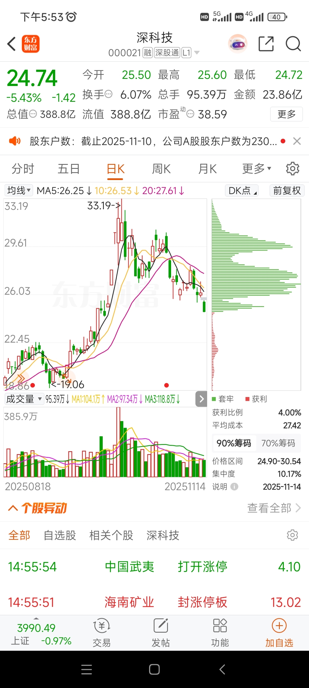 $深科技(SZ000021)$ 百分之95%被套了,今天也割肉,没得救