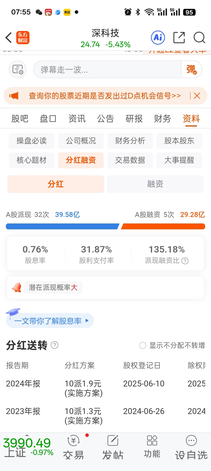$深科技(SZ000021)$ 负债低、商誉低,分红超过融资的科技股不多吧!以后年盈利都是上1000000000元的,每股净资产很快上10元了