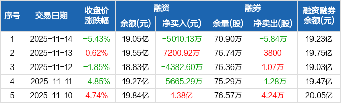深科技:融资净偿还5010.13万元,融资余额19.05亿元(11-14)