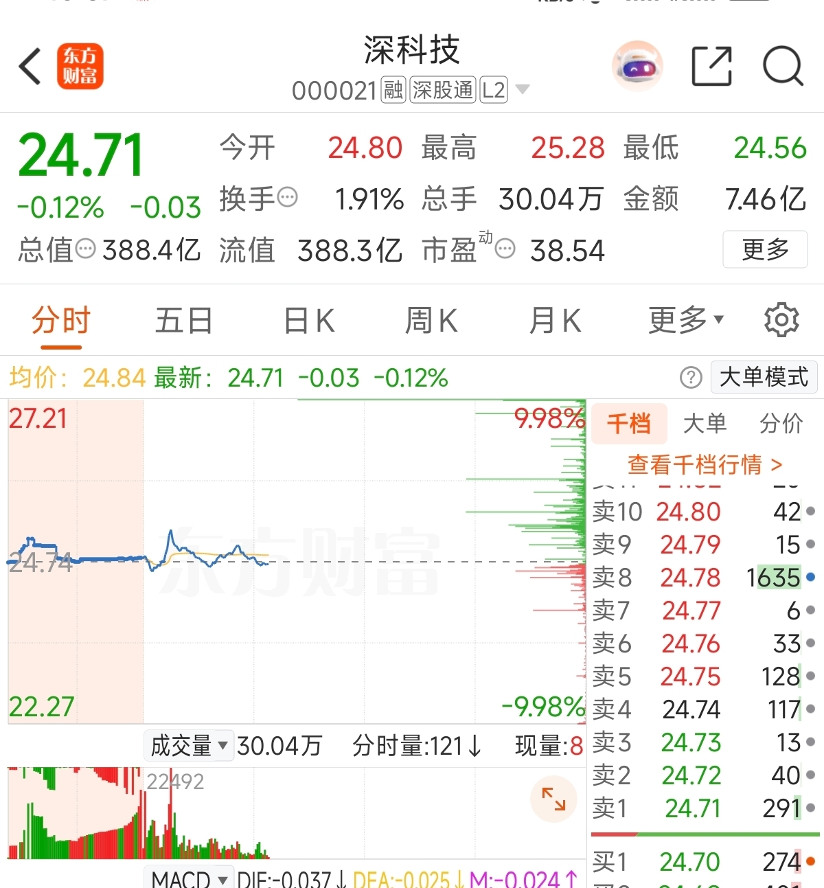 $深科技(SZ000021)$ 不卖不卖,一股不卖,有种跌停
