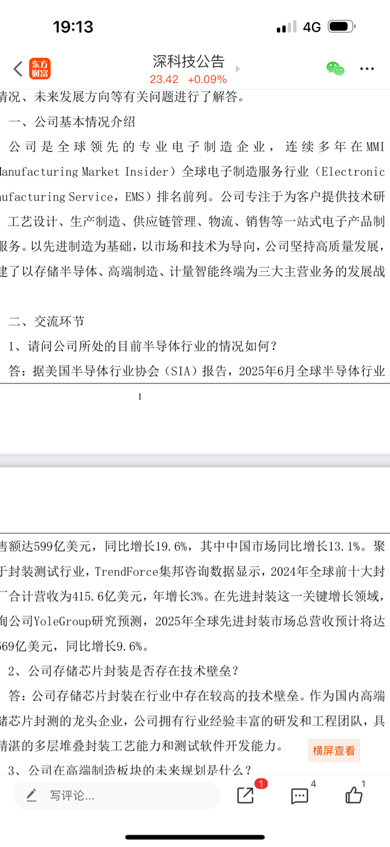 $深科技(SZ000021)$ 今天大盘成交量继续萎缩,深科技成交量开始放大,盘后传出二家机构调研,其中东方证券全国排名11名!万家基金在公募基金排名24名,掌握5800亿资金规模!调研最主要目的封装技术!上市公司不在强调广收加工费,给出了高调评价!