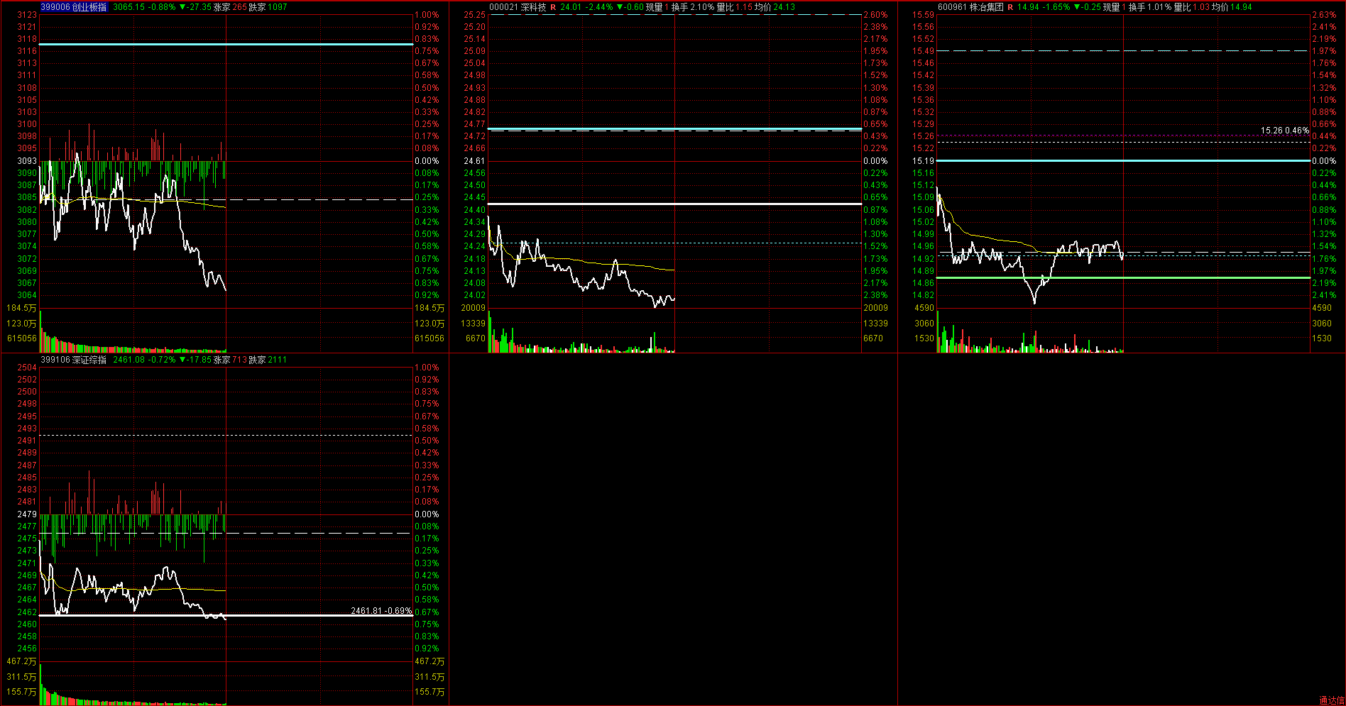 可怜的深科技,昨天好不容易站上AL ,今天直接跳空跌破。好在及时24.24卖出大半,加仓株冶集团,深科技下跌不很出意外,黄金白银的株冶集团开盘就大跌莫名其妙,所以决定优先买株冶集团 目前大盘也不妙