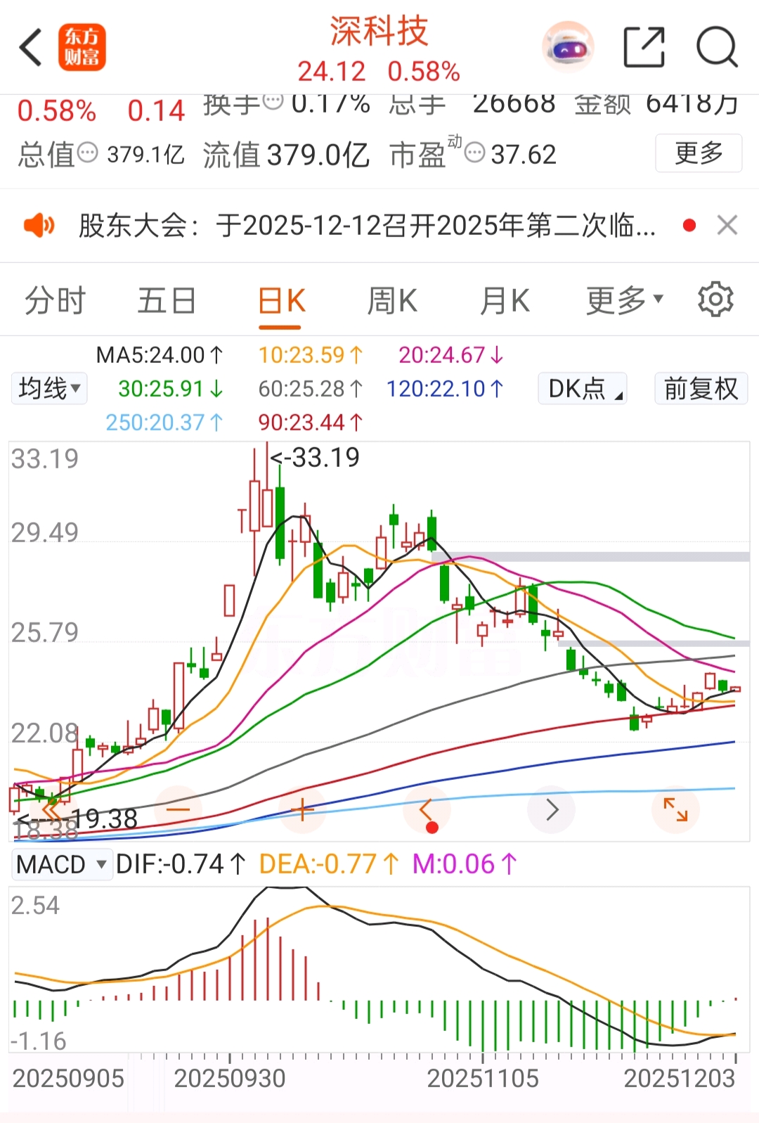 $深科技(SZ000021)$ MACD第一天变红柱,变盘了,好事。理论上来说,今天应该有阳线,加油。上方第一压力位在20日线,下方支撑位需要紧盯10日线。