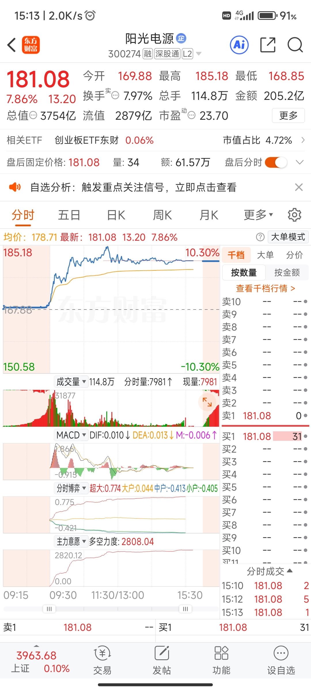 不用你知道也不用你算,去问问AI就行了!!!#复盘记录# #收盘点评# #炒股日记# $深科技(SZ000021)$ $蔚蓝锂芯(SZ002245)$ $阳光电源(SZ300274)$ 深科技低位22-24 正常26-28 业绩超预期30-33——蔚蓝锂芯大概预期价20元——阳光电源预期200元,目前价格180算正常价小心获利震荡!!!