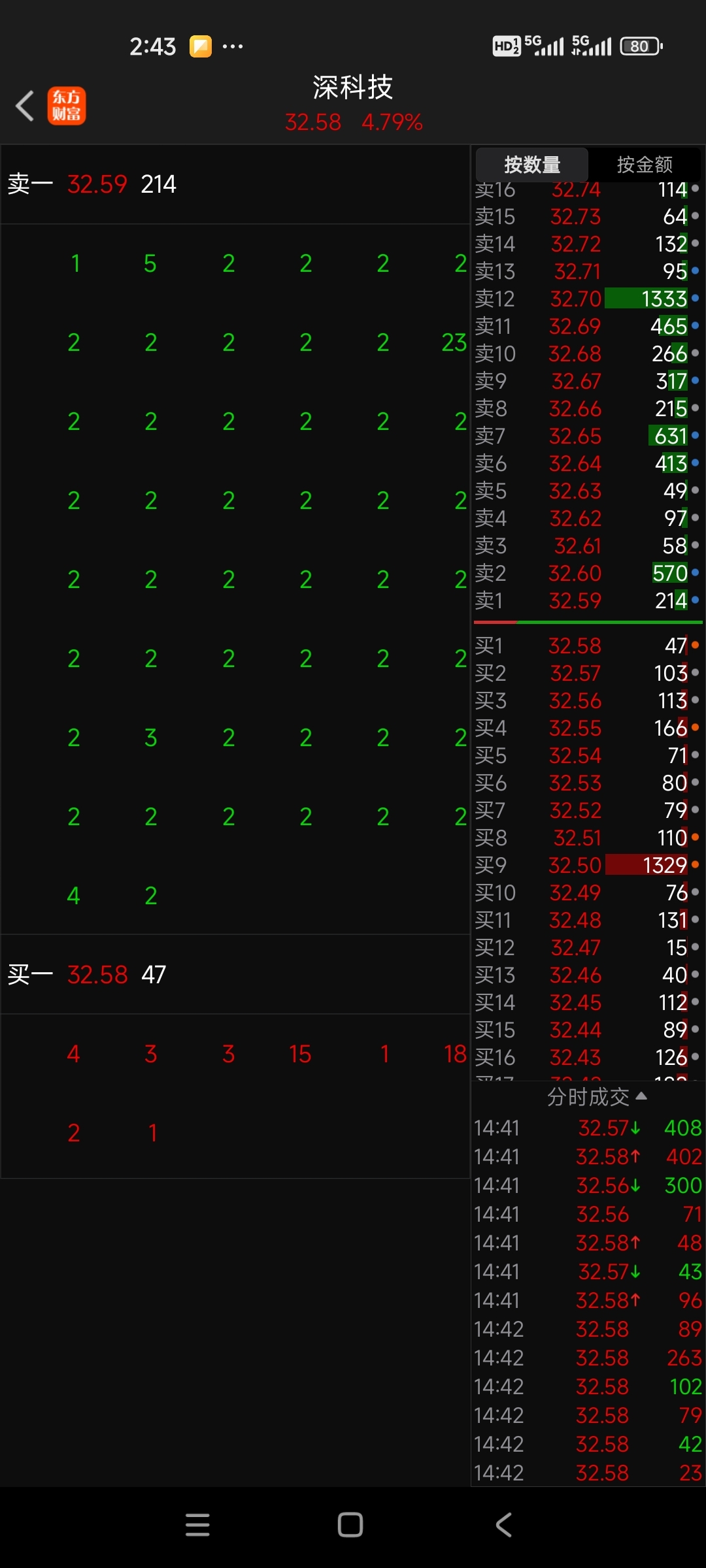 $深科技(SZ000021)$ 上面都是主力拆单,等着散户跟风买,哈哈