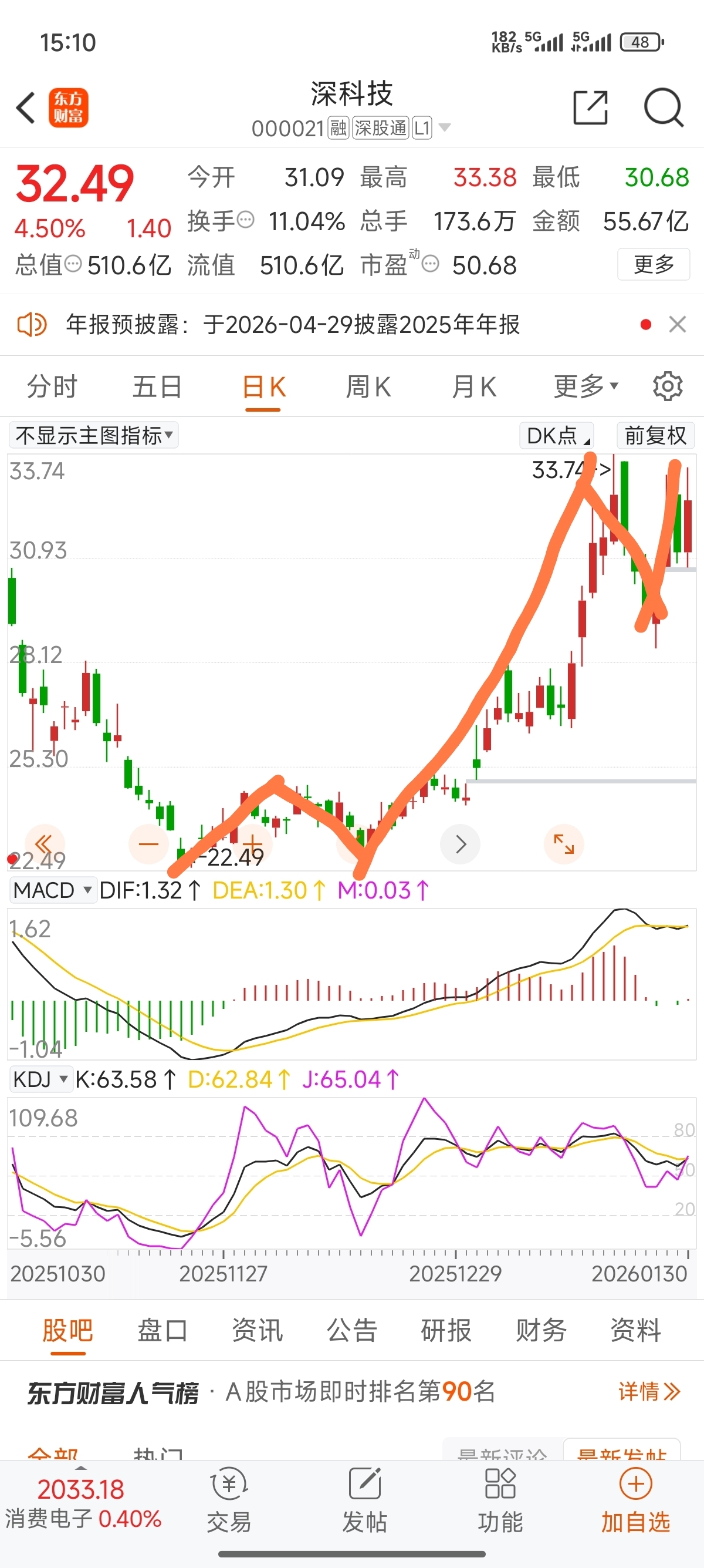 $深科技(SZ000021)$ 日线缺一个新高的第五浪。