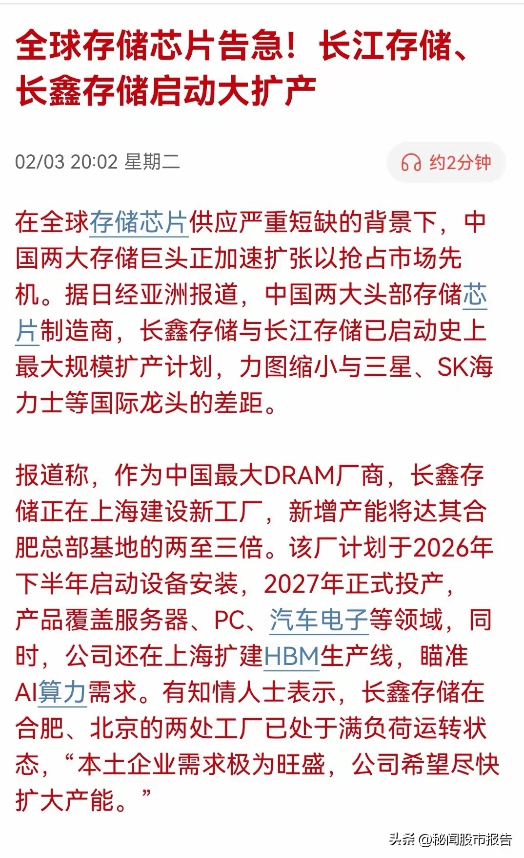 $深科技(SZ000021)$ 作为长鑫和长江存储的核心外包商,承接两家厂商各自至少50%的封测订单,深科技业绩能不好吗