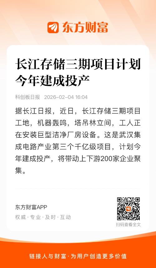 据长江日报,近日,长江存储三期项目工地,机器轰鸣,塔吊林立间,工人正在安装巨型洁净厂房设备。这是武汉集成电路产业第三个千亿级项目,计划今年建成投产,将带动上下游200家企业聚集。