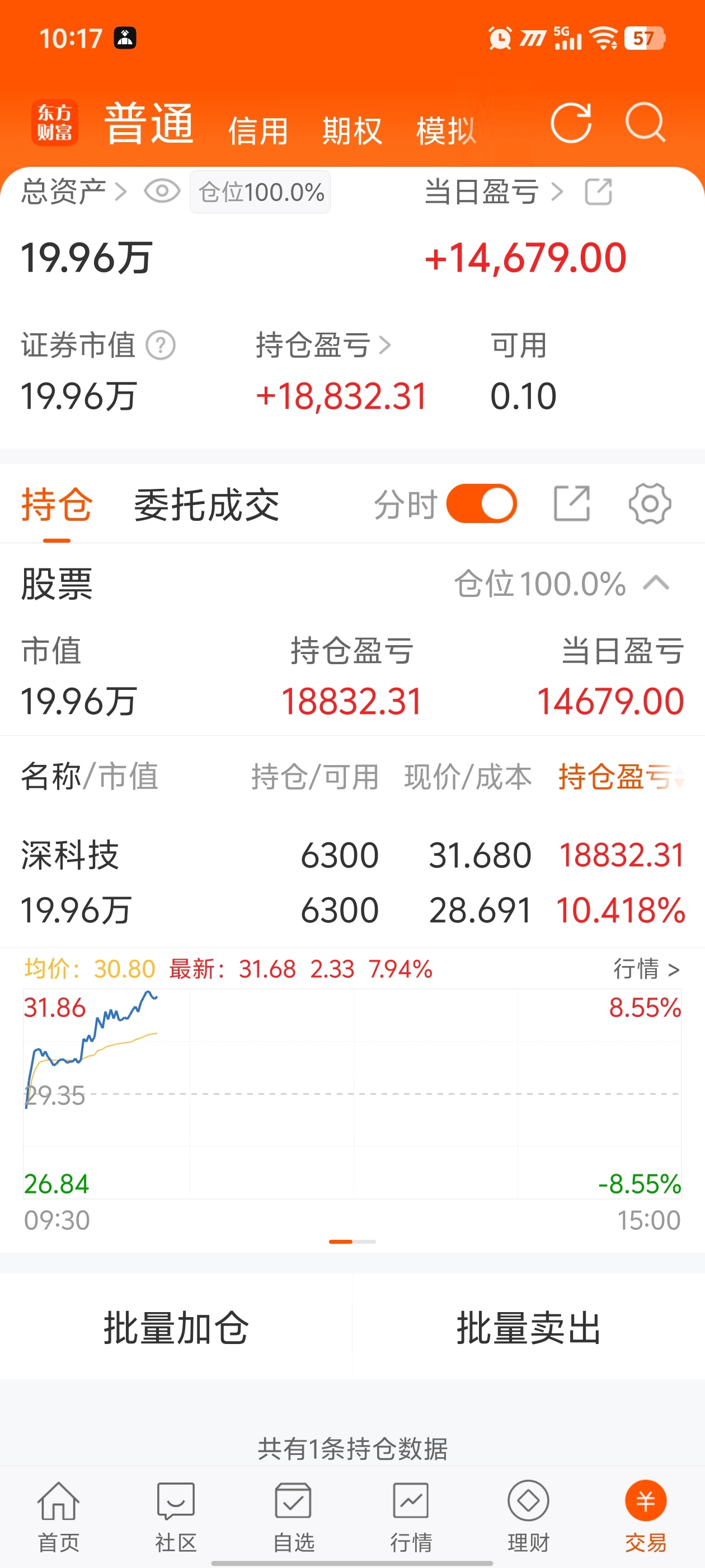 昨天开盘满仓梭哈,本来想做中长线,没想到两天直接吃大肉,这下真的运气好