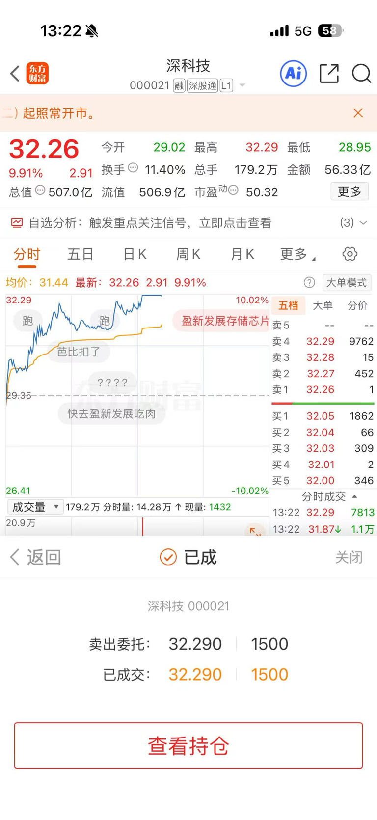 $深科技(SZ000021)$ 哎,卖飞了!