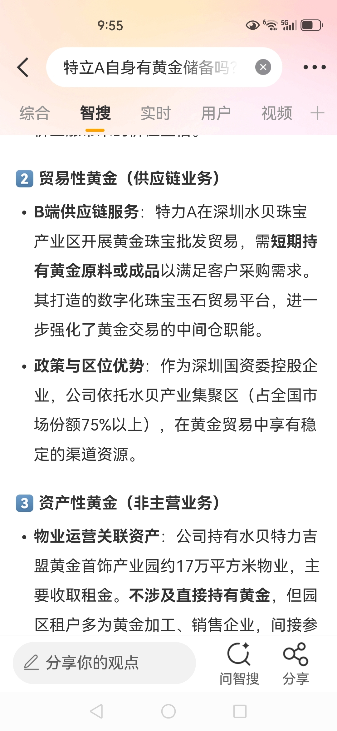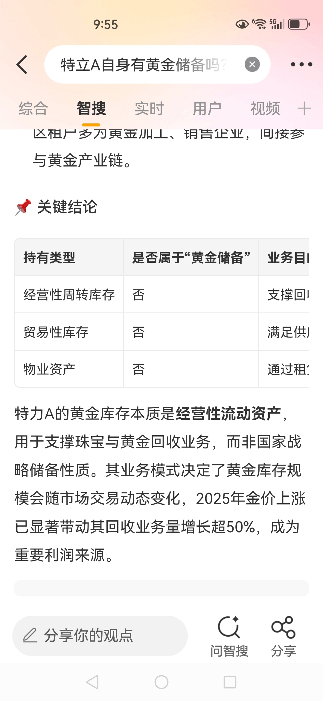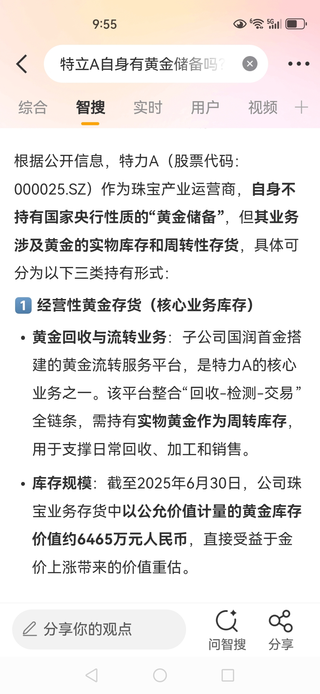 今年黄金上涨带动业务量增长百分之五十。还未体现在股价上