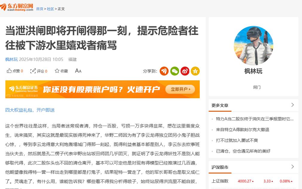 温馨提示: 1.根据《证券法》规定,禁止编造、传播虚假信息或者误导性信息,扰乱证券市场;2.用户在本社区发表的所有资料、言论等仅代表个人观点,与本网站立场无关,不对您构成任何投资建议。用户应基于自己的独立判断,自行决定证券投资并承担相应风险。《东方财富社区管理规定》