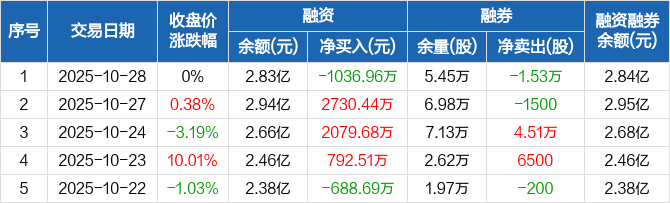 特力A:融资净偿还1036.96万元,融资余额2.83亿元(10-28)