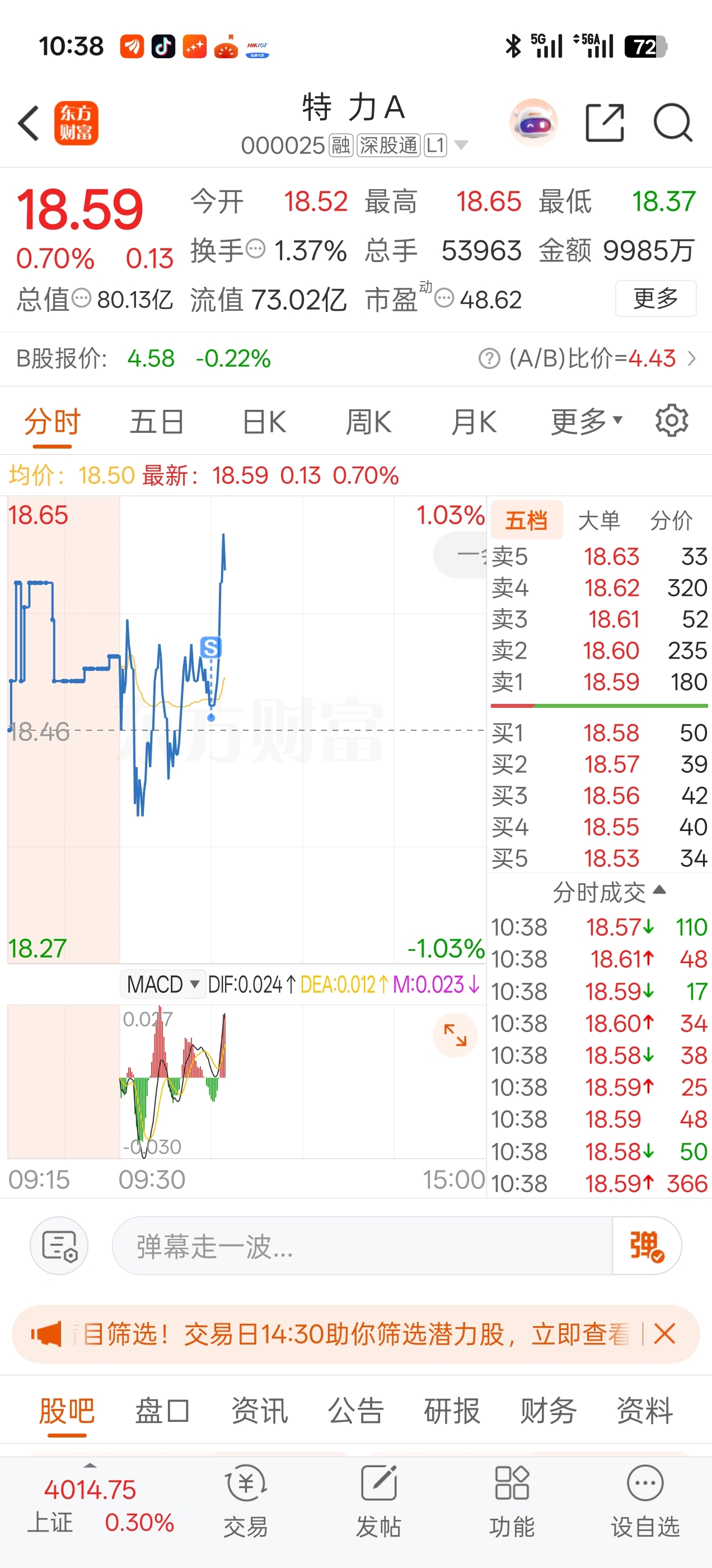 $特 力A(SZ000025)$ 谢谢我都快点谢谢我