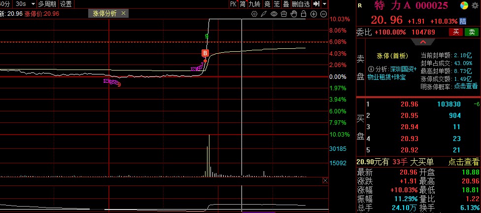 还好今天有空,有电脑在开盘,一看深圳国资委异动,果断出手,幸好手快,在慢一点点估