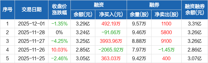 特力A:融资余额3.29亿元,创近一年新高(12-01)