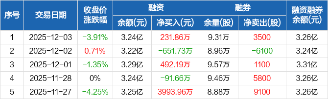 特力A:融资净买入231.86万元,融资余额3.24亿元(12-03)