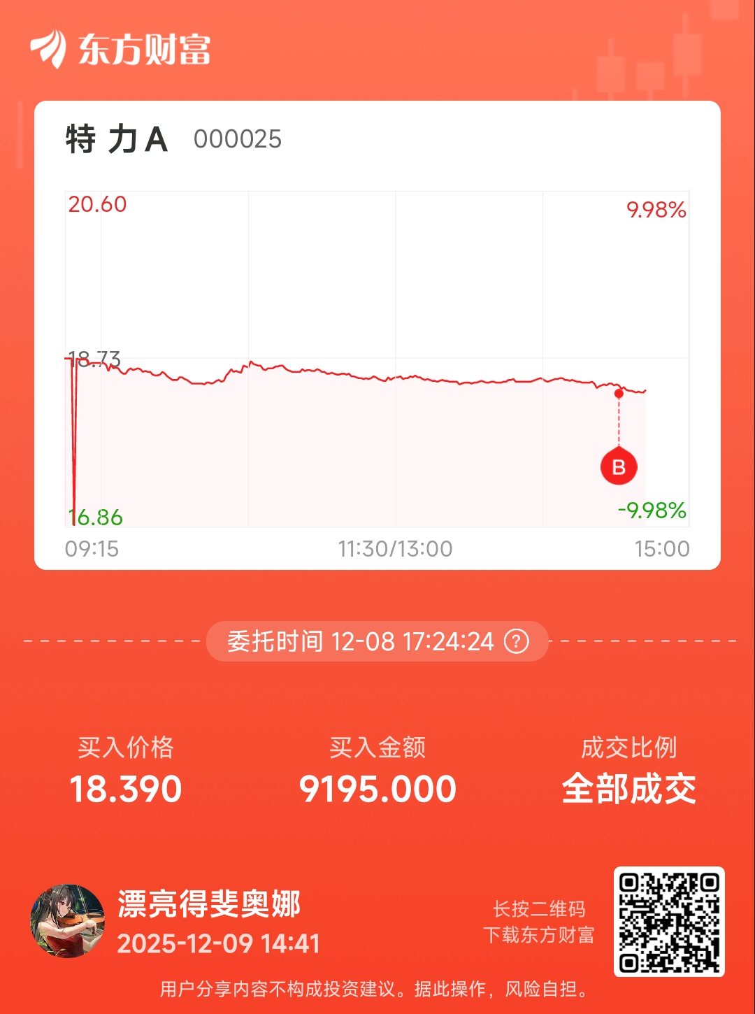 $特 力A(SZ000025)$ $电广传媒(SZ000917)$ 昨天下午挂的1839(看委托时间),压根不知道晚上小日子7.8级近海大地震,要不然挂1809或1767了