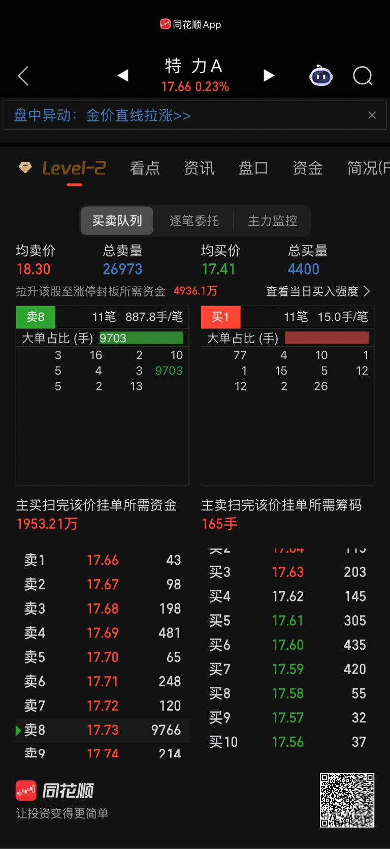 $特 力A(SZ000025)$ 昨天的9703手,今天又来,卧槽