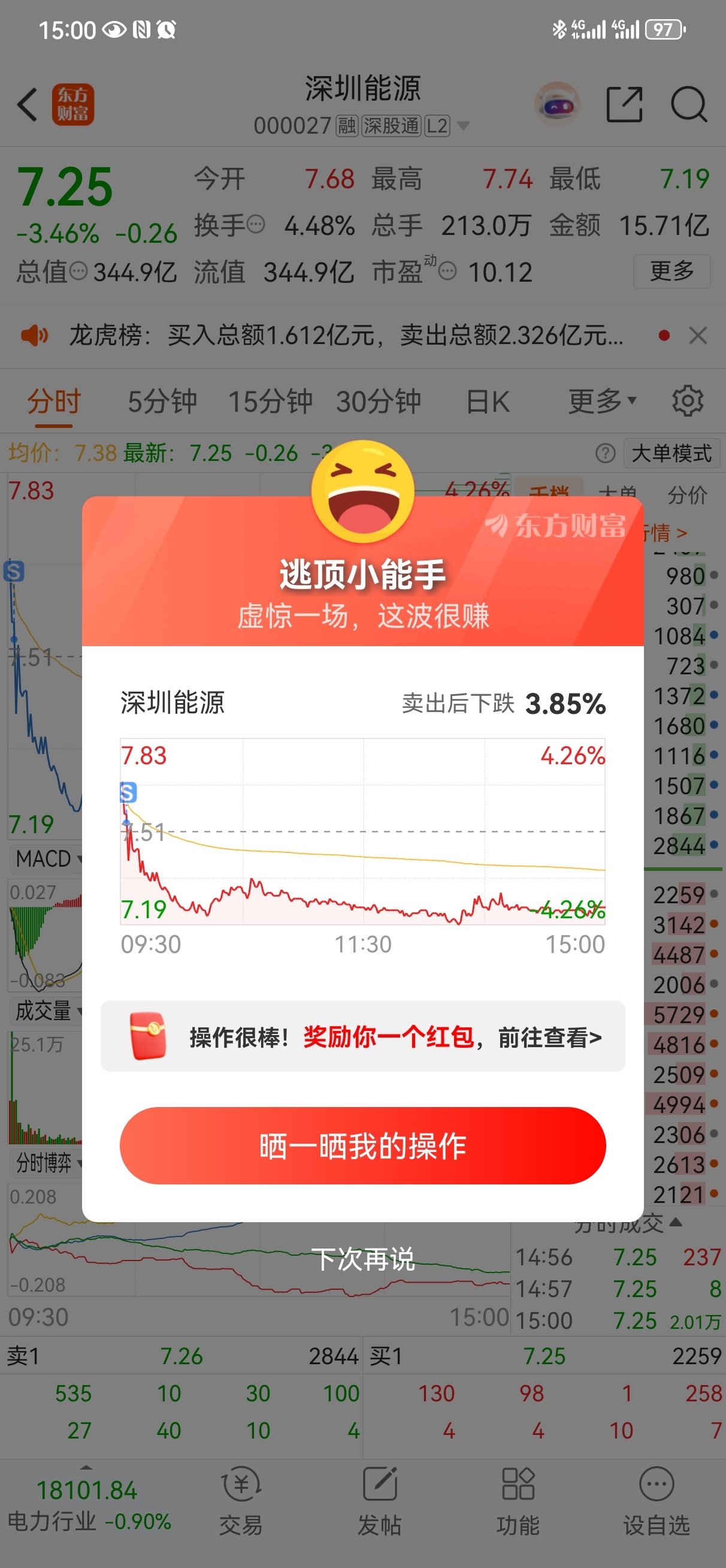 $深圳能源(SZ000027)$ 卖了就挂买单,尾盘都没买上,也不知道是不是被洗掉了。