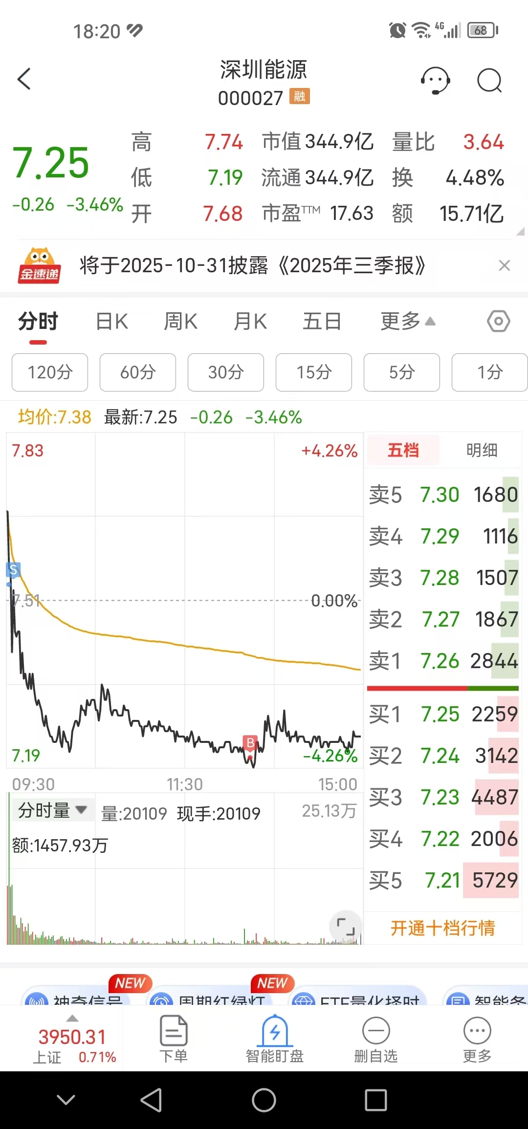 深圳能源行情应该没走完,今天开盘后T掉了,7.21接回1成仓观察