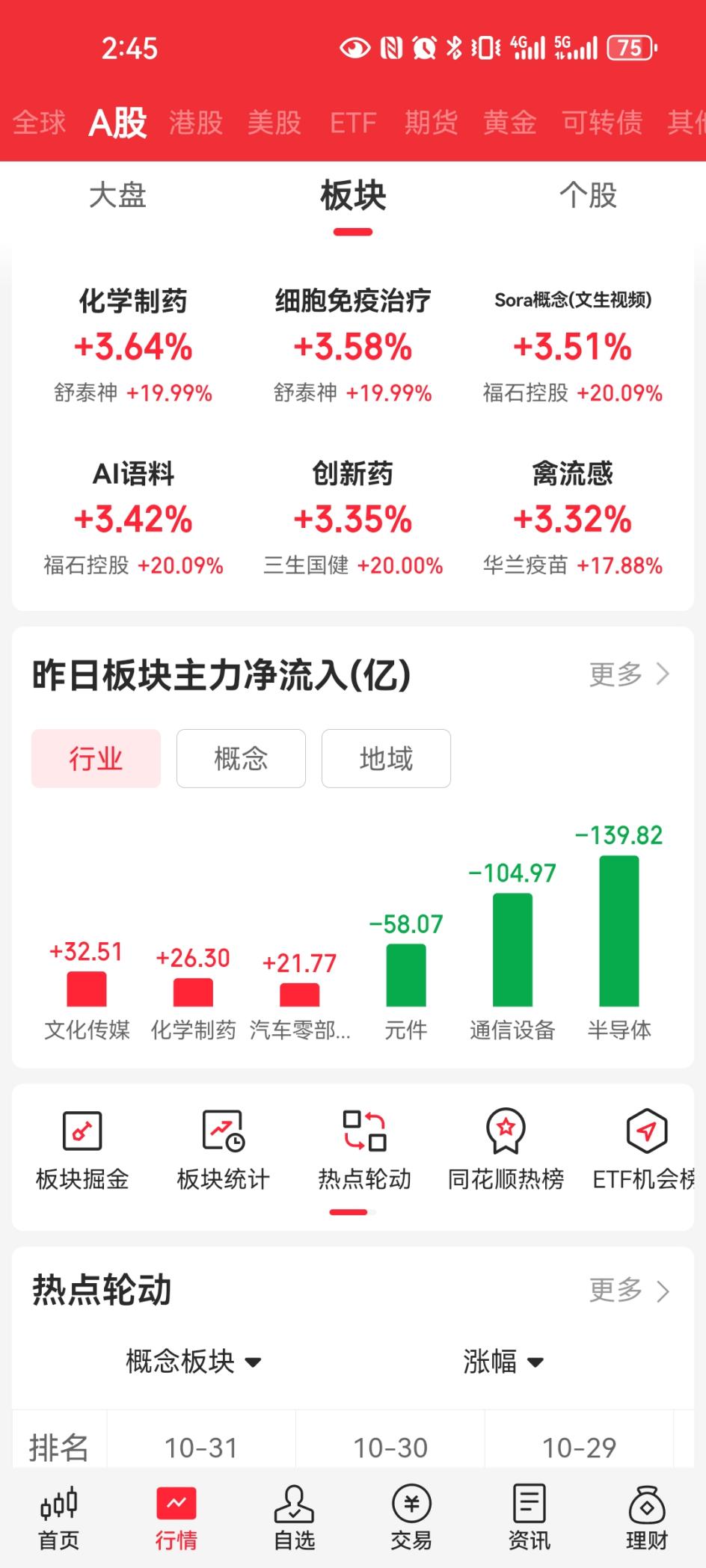 创新药 近日创新药板块表现强势,z金从科技板块流出后涌入创新药领域,10.31日,联环药业早盘快速拉板,带动了整个板块的市场情绪。