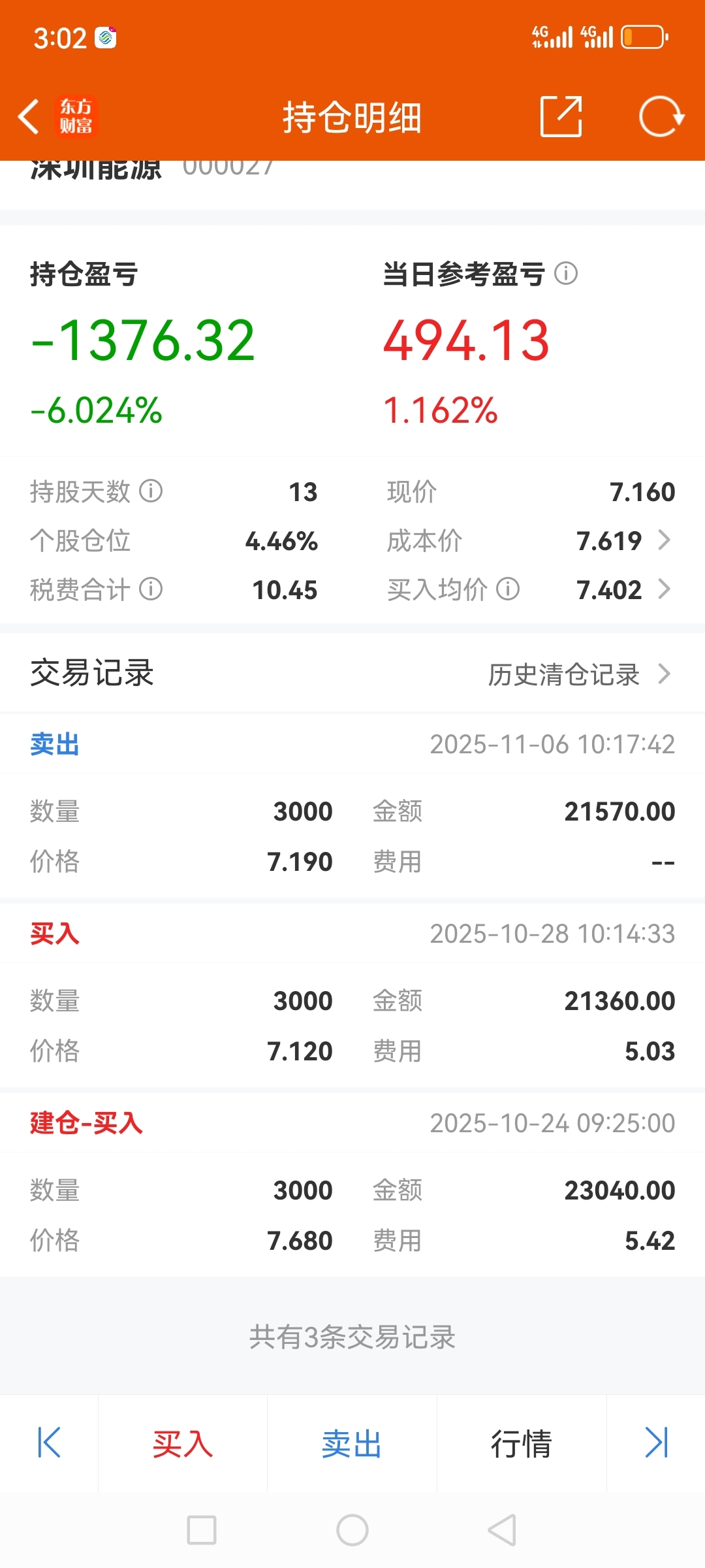 $深圳能源(SZ000027)$ 10多天才第一次T,股性太差了。才T了7分钱挣了210元,还除10元手续费。等7元接回。