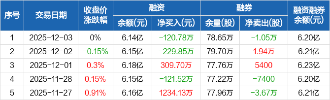 深圳能源:融资净偿还120.78万元,融资余额6.14亿元(12-03)