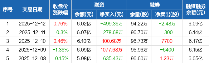 深圳能源:融资净偿还499.36万元,融资余额6.02亿元(12-12)