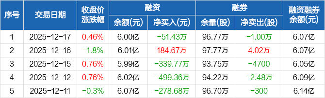 深圳能源:融资净偿还51.43万元,融资余额6亿元(12-17)
