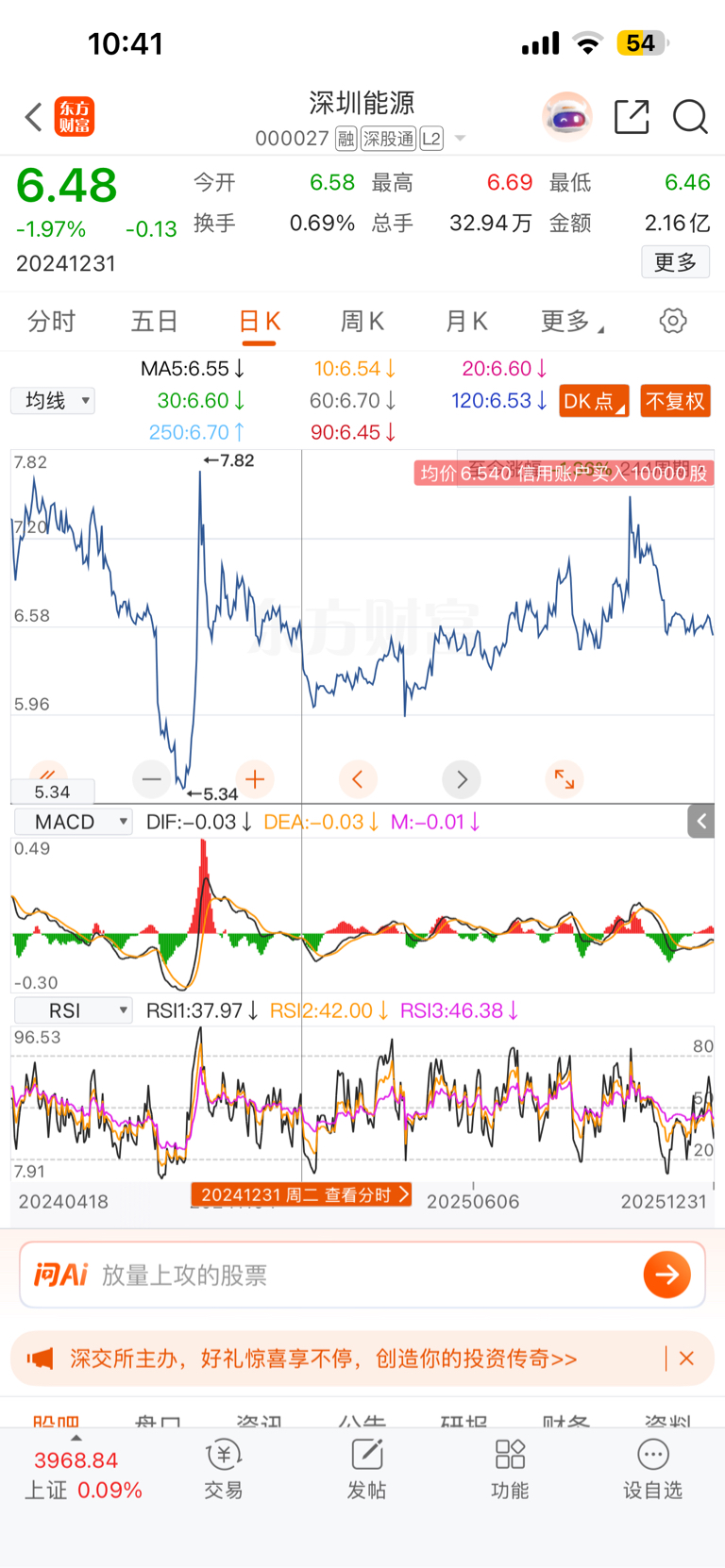 恭喜一剪梅2024年12月31号深能6.48一剪梅吹了1年6.52,不错了涨了4