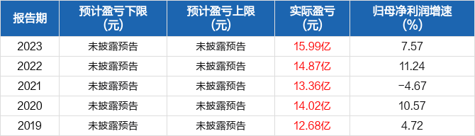 近5年归母净利润预测情况
