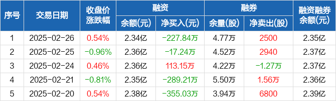 国药一致:融资净偿还227.84万元,融资余额2.34亿元(02-26)